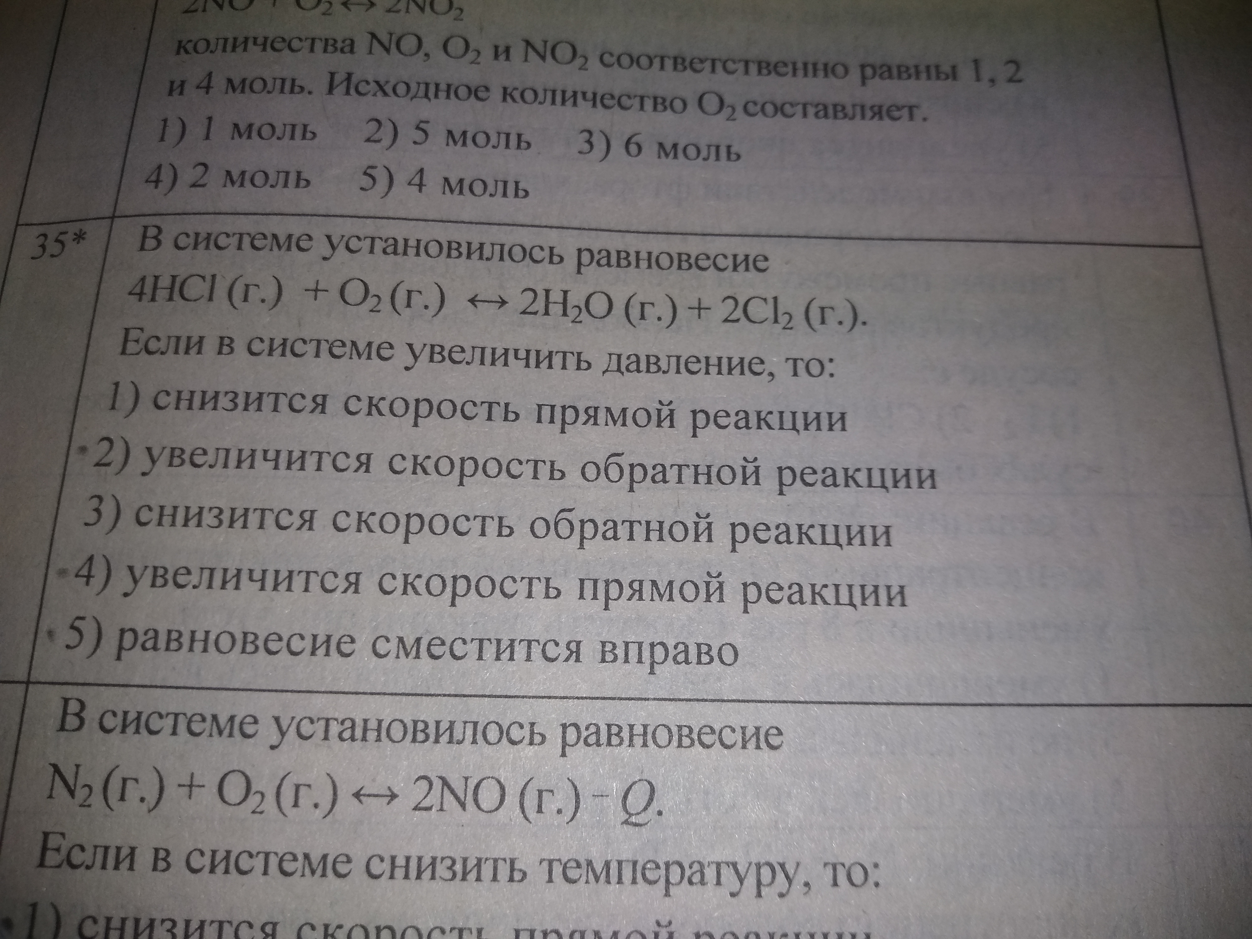 Объясните почему скорость реакции повышается и обратная и прямая? Остальное я понимаю. №35! Ответ: 2,4,5