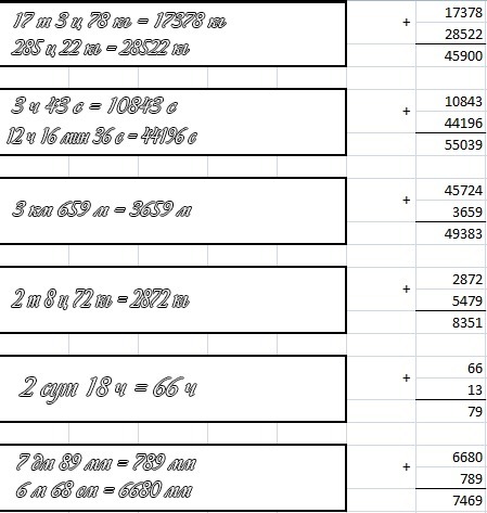 4) 5479 кг + 2 т 8 ц 72 кг = 8351 кг