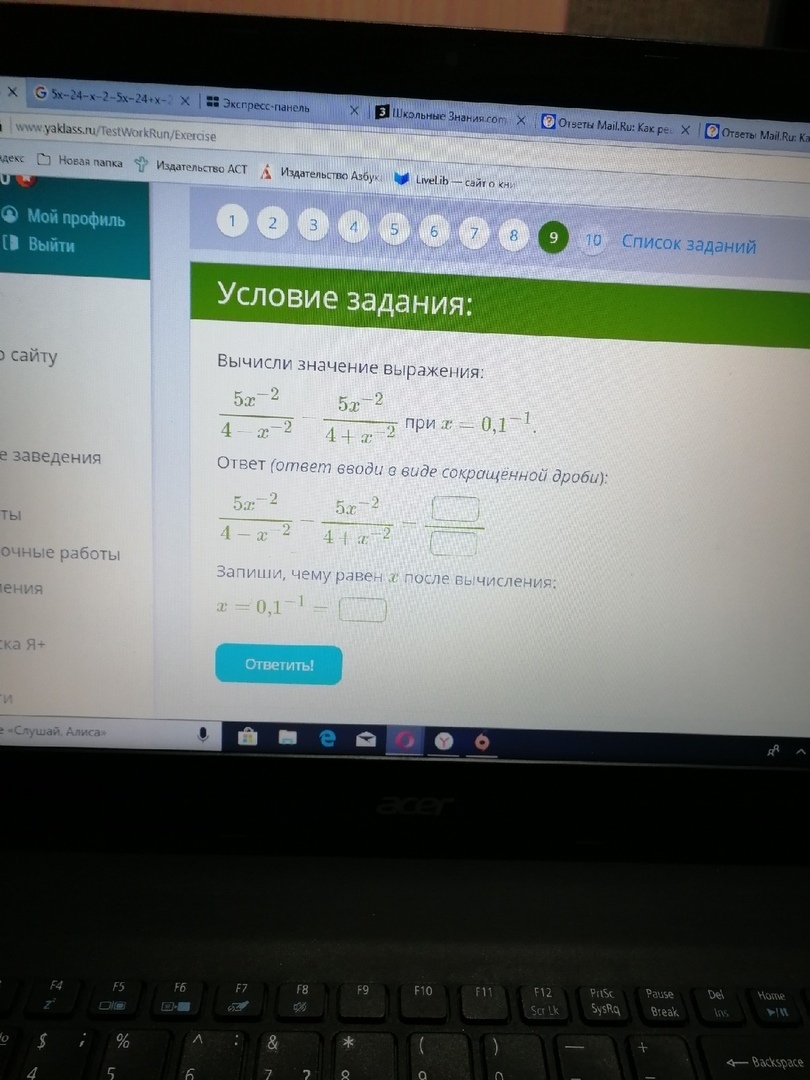 Ответ на фото, 2-е задание не совсем понятно, по я решил уравнение x=0,1^(-1)