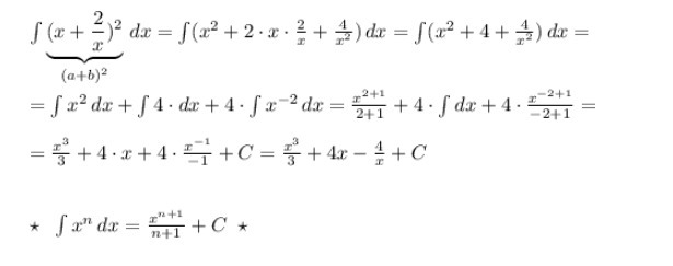 ∫ (х + 2/х)²dx =∫(x² + 2*x* (2/x) +(2/x)²) dx =∫(x² +4+ 4/x²)dx =