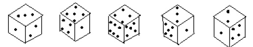 Лишний кубик в середине -3. На нём нет грани с 1 точкой, а на остальных - есть.