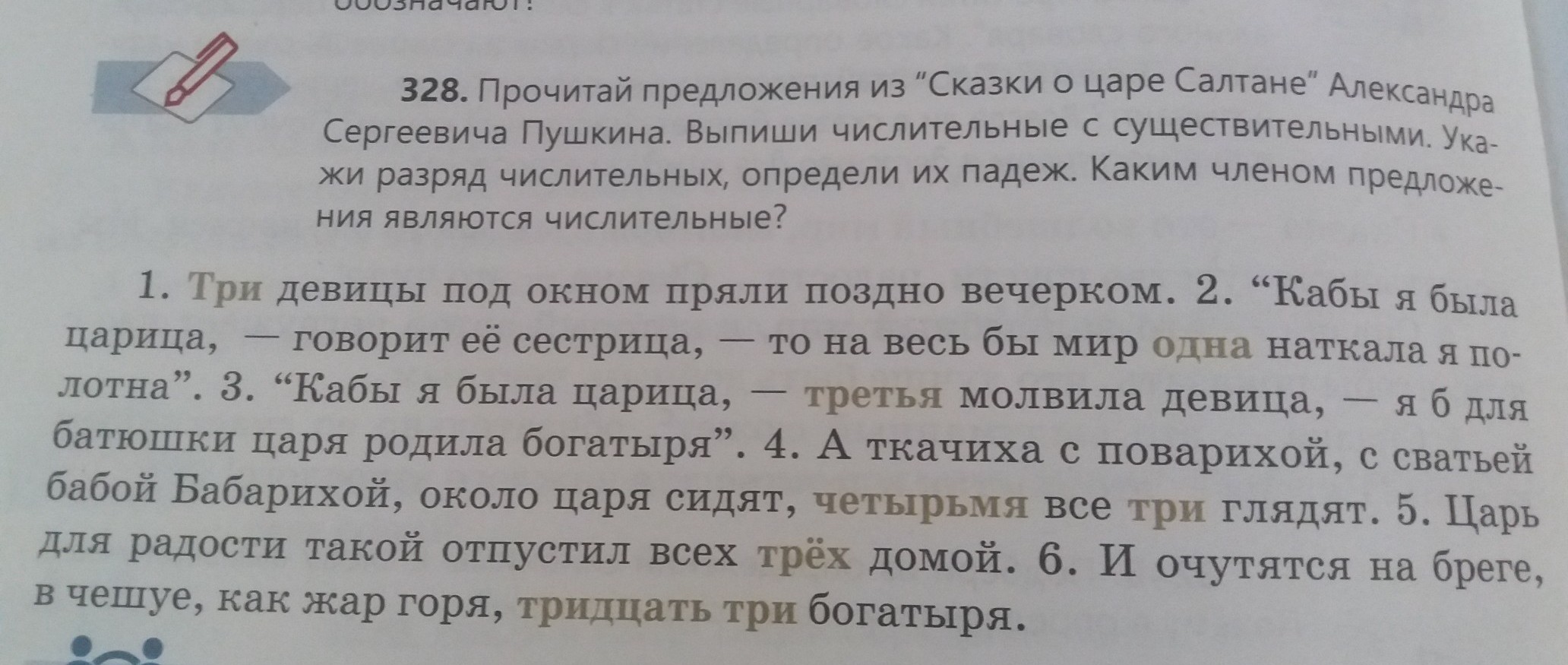 - Три , одна , третья , четырьмя, три, трёх, тридцать три. В предложение это всё выражено числительными