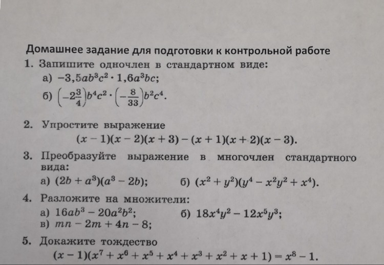 3); ; (2b+a^3)(a^3-2b)=(a^3)^3-(2b)^2=a^9-4b^2\\(x^2+y^2)(x^4-x^2y^2+y^4)=(x^2)^3+(y^2)^3=x^6+y^6\\4); ; 16ab^3-20a^2b^2=4ab^2cdot (4b-5a)\\18x^4y^2-12x^5y^3=6x^4y^2cdot (3-2xy)\\mn-2m+4n-8=m(n-2)+4(n-2)=(n-2)(m+4)\\5); ; (x-1)(underbrace {x^7+x^6+x^5+x^4+x^3+x^2+x+1}_{geom.progr.; ,; b_1=1; ,; q=x})=\\=(x-1)cdot frac{1-b_{n}q}{1-q}=(x-1)cdot frac{1-x^7cdot x}{1-x}=-(1-x^8)=x^8-1; ;\\x^8-1=x^8-1