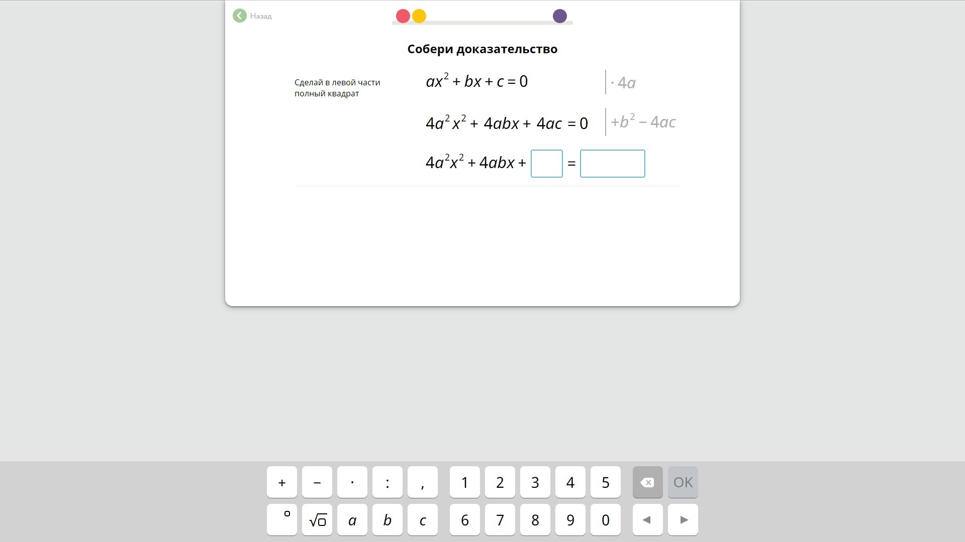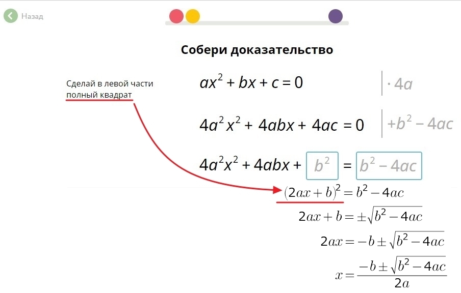 а дальше--доказательство формулы, по которой можно найти корни квадратного трехчлена...