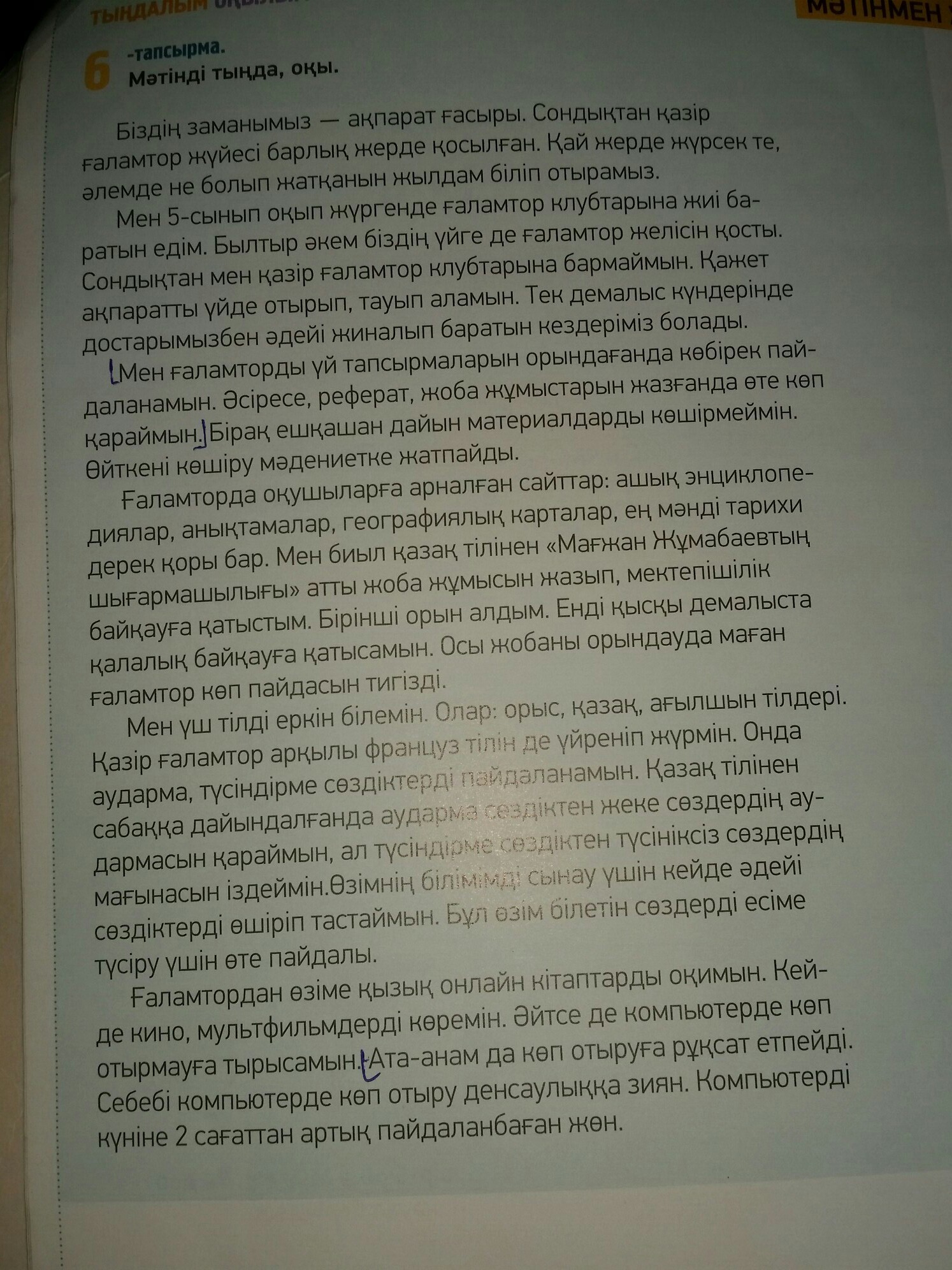 мəтіңді оқыда мазмұның айтасын ұстазға болды!