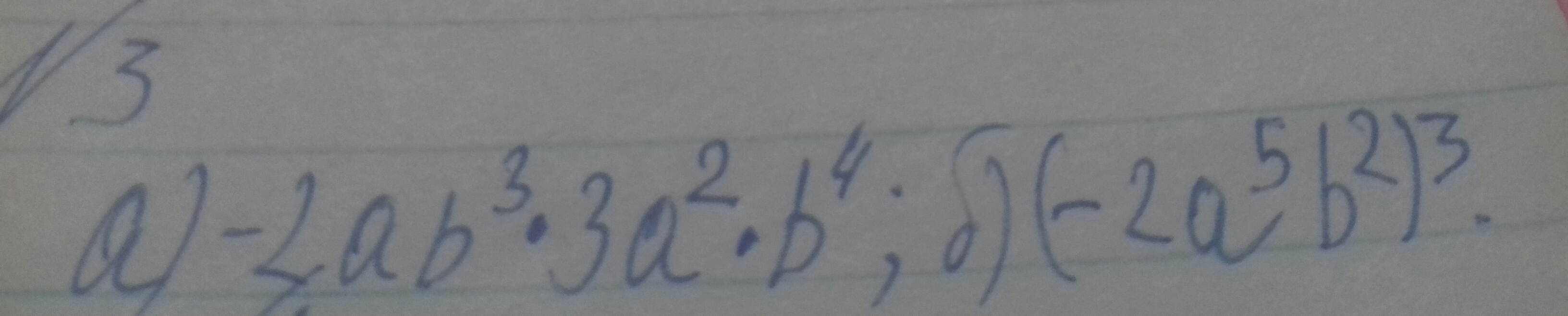 а) - 2аb³ · 3a²b⁴ = -2 · 3 · a⁽¹ ⁺ ²⁾ · b⁽³⁺⁴⁾ = -6a³b⁷