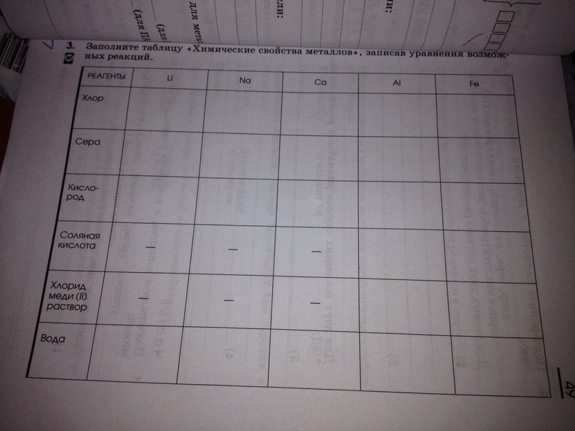 Заполните таблицу "Химические свойства металлов",записав уравнения возможных реакций.