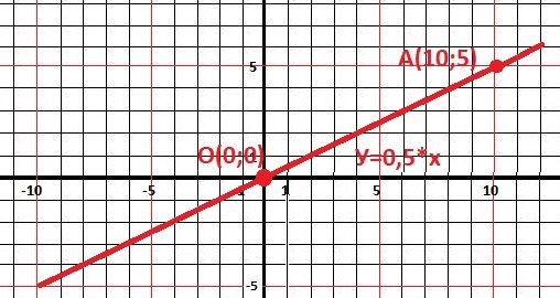 5 - вторая точка - как можно дальше и значение Х зависит от размеров рисунка. Например, Х=10 и У = 10/2 = 5 - точка А(10;5)