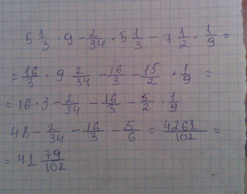5 1/3 * 9 - 2 3/4 * 5 1/3 - 7 1/2 * 1/9 = 32 1/2