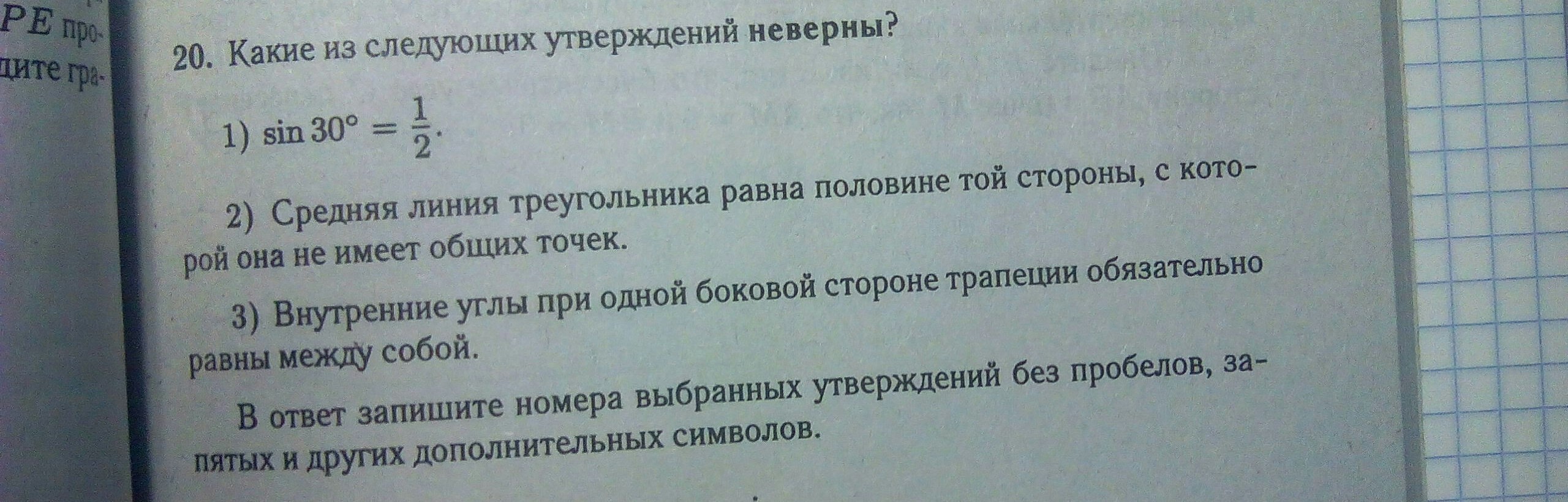 3, внутренние углы при одной боковой стороне трапеции в сумме 180