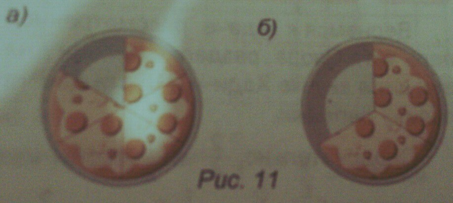 Видно, что торт разделен на 6 частей, осталось 5. Значит,