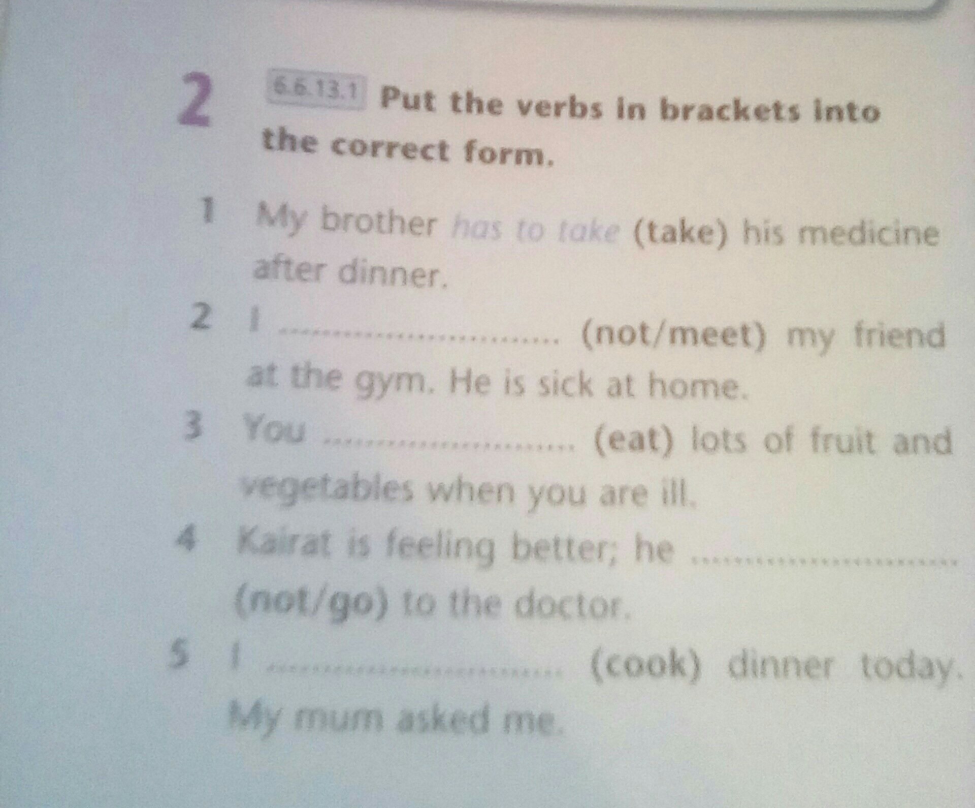 2 - I haven't meet my friend at the gym. He is sick at home.