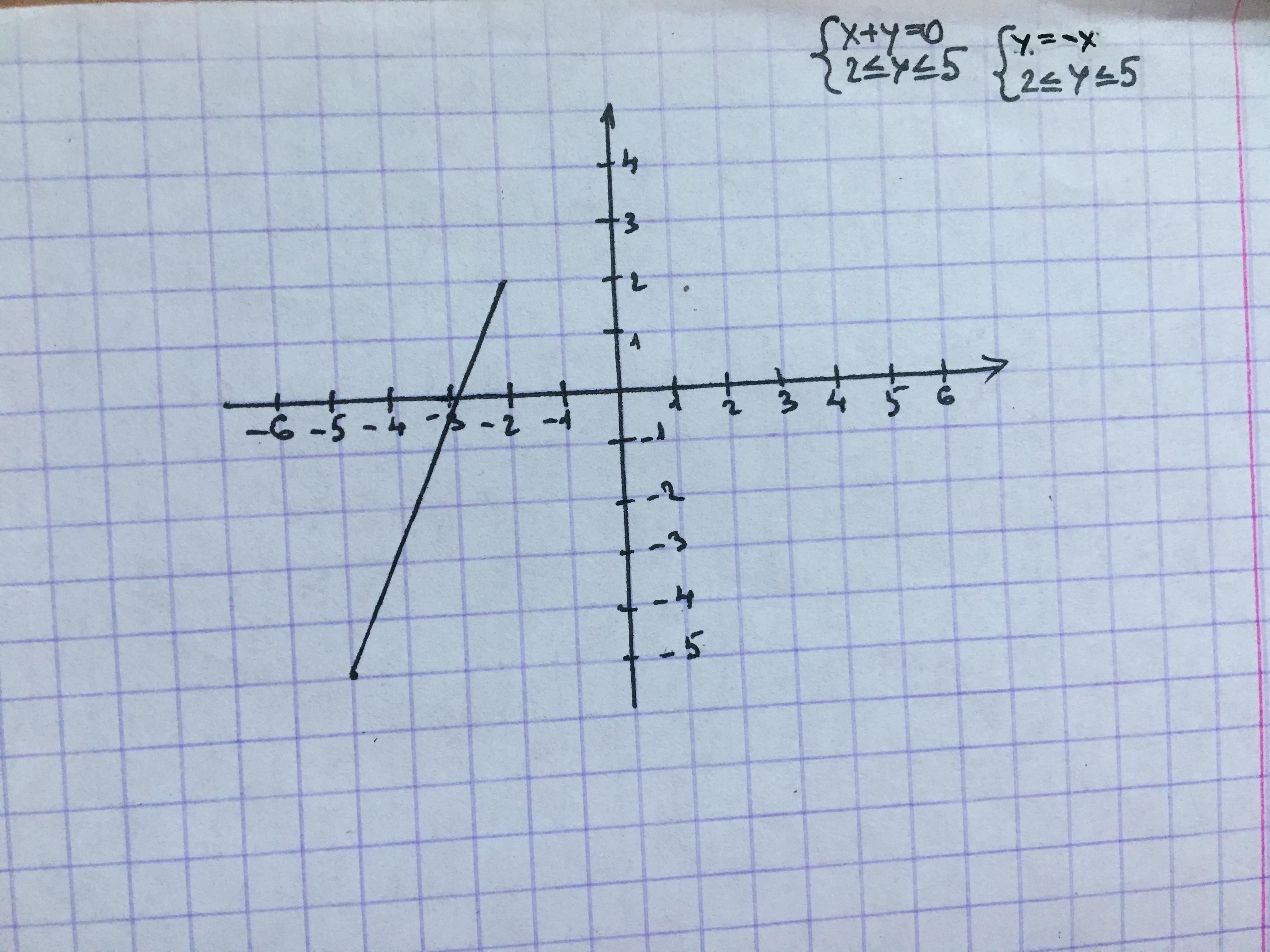 Изобразите на координатной плоскости множество точек удовлетворяющих условиям x+y= 0 и 2 <_Y <_ 5
