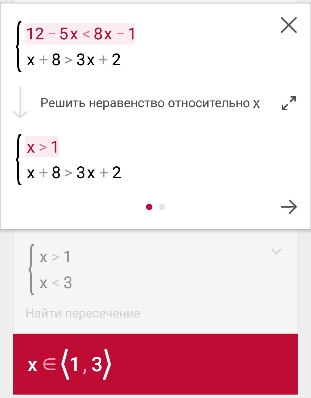 Ответ: x ∈ (1;3)