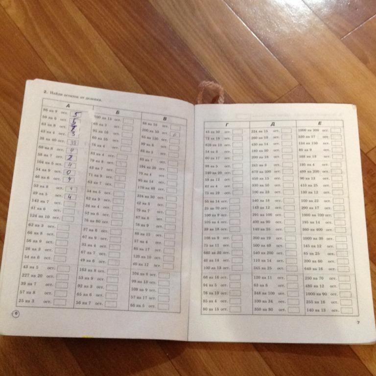Пожалуйста, помогите. Нужно до 19:00 сегодняшнего дня. Надо найти остаток от деления чисел с обоих страниц.