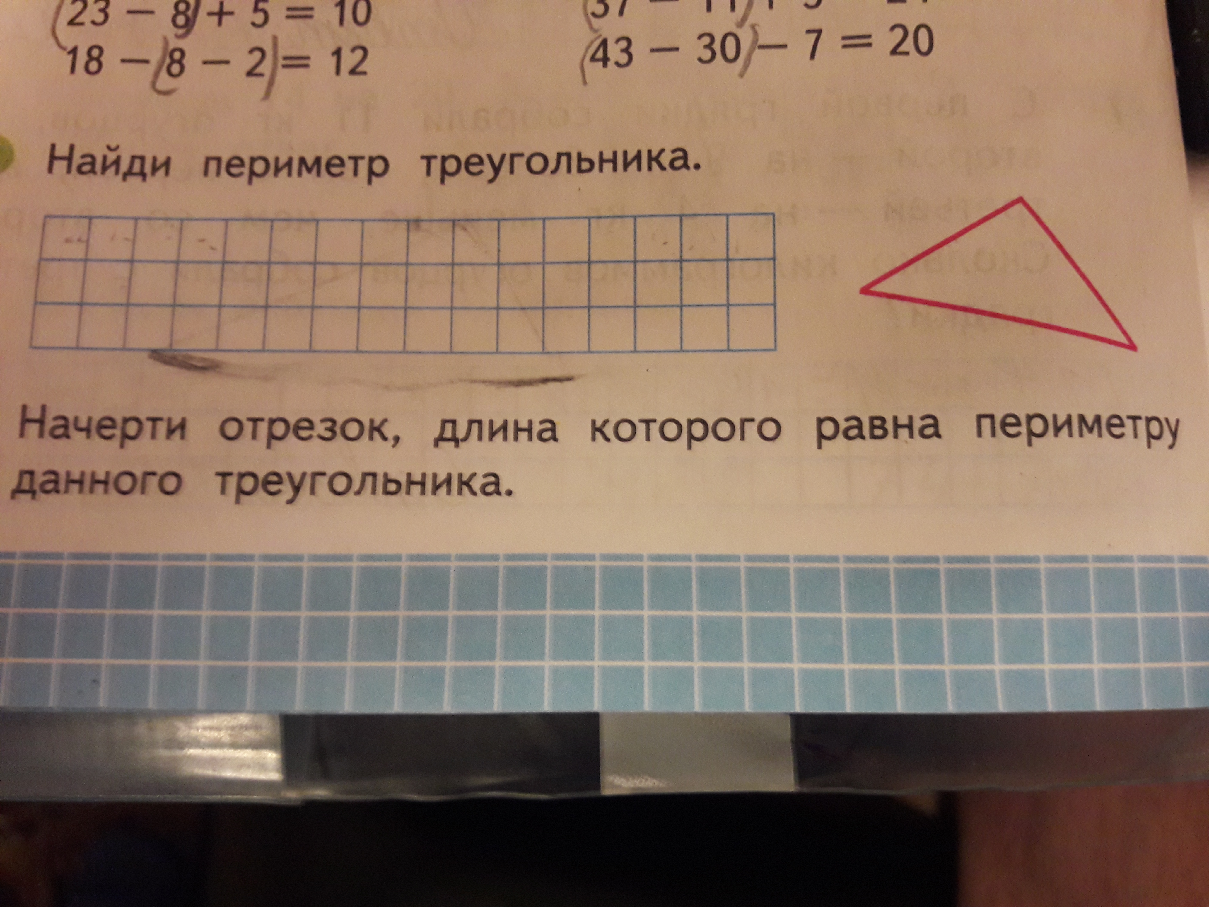 1) чтобы найти периметр фигуры, нужно суммировать все его стороны.( P= a+b+c) 2)нужно начертить отрезок той же длинны как и периметр данного треугольника