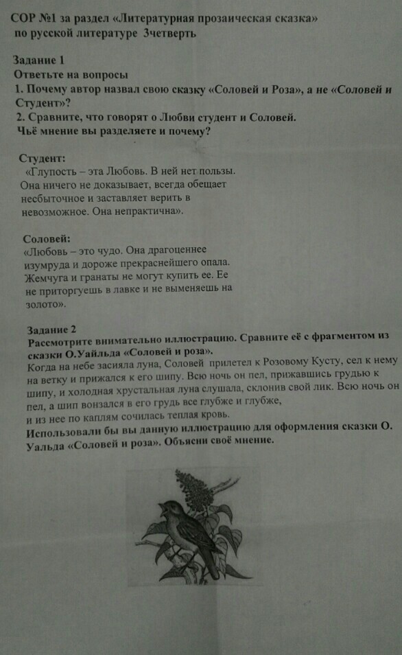 Я разделяю мнение соловья.Мнения соловья и студента отличаются всем,ведь все противоположно.По-моему,любовь-это красота человека.