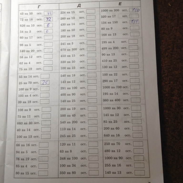 Прошу, помогите. Нужно до 19:00 сегодняшнего дня. Надо найти остаток от деления чисел со столбиков "Г", "Д", "Е".