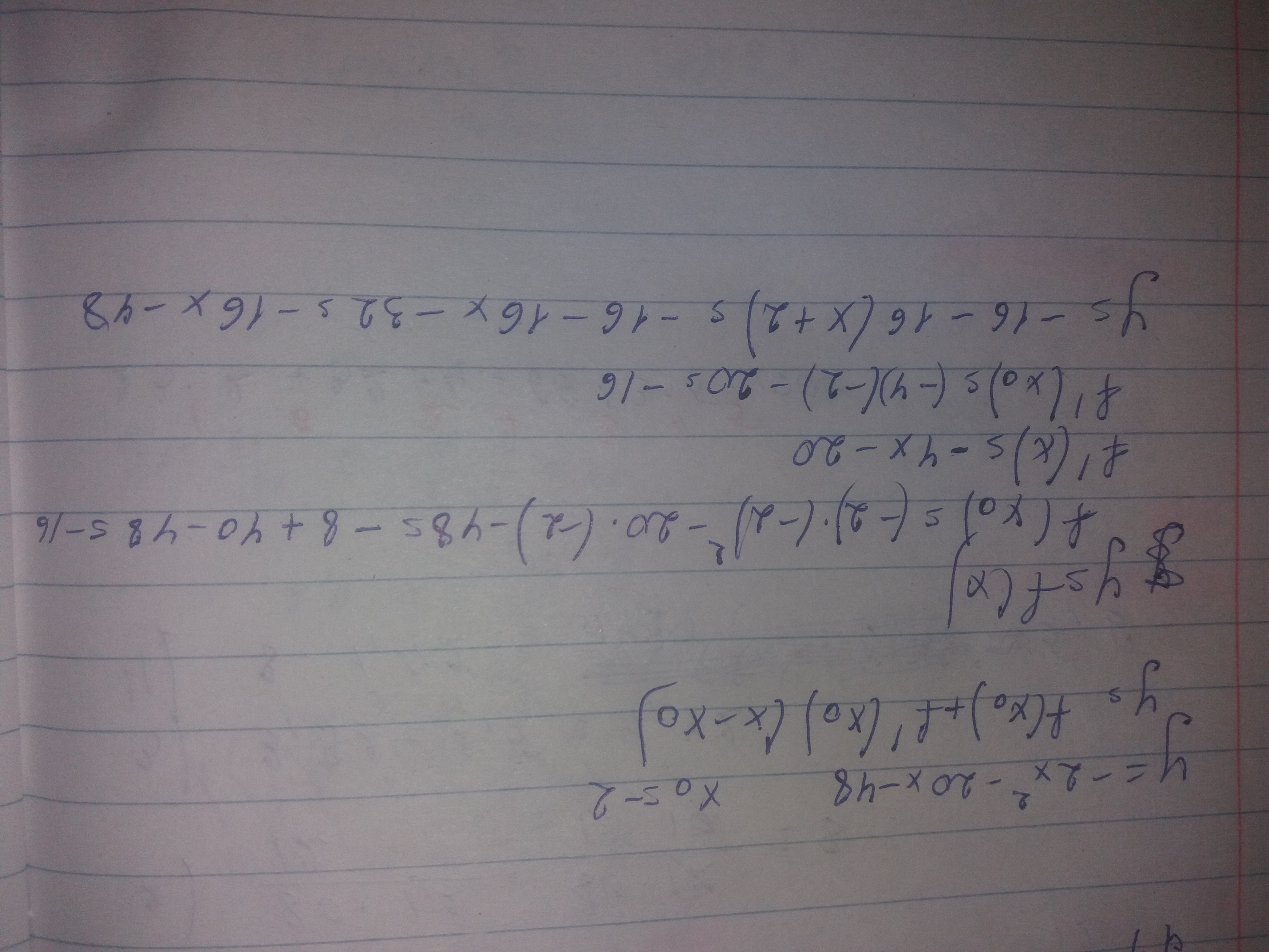составьте уравнение касательной к графику функции y=-2x^2-20x-48 в точке с абсциссой Хо=-2