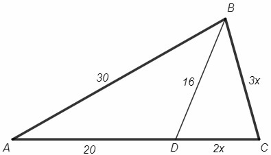 Отрезок BD является биссектрисой треугольника ABC. Найдите DС,если известно, что: AB=30, AD=20, BD=16