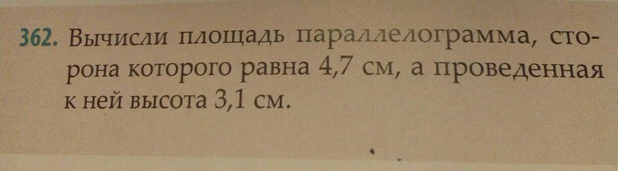 Вроде бы 1) S = a*h 4.7 * 3.1 = 14.57