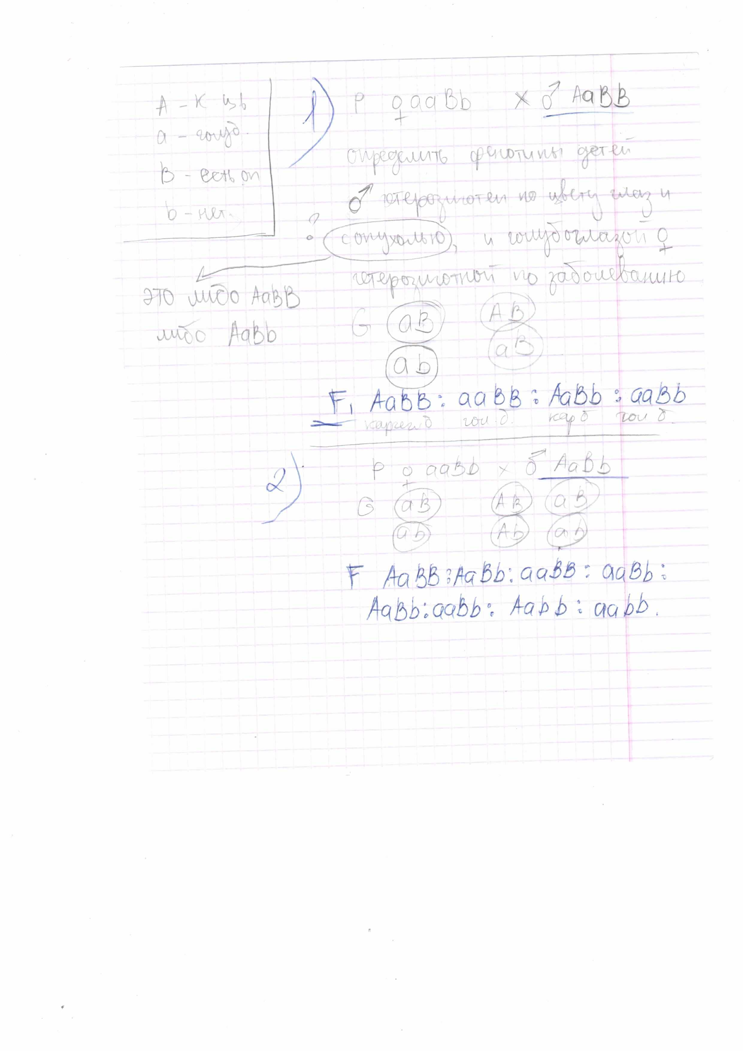 я сделала 2 варианта но фенотипы во 2 случае не стала подписывать, т к оч геморно, если ты в этом хоть немного шаришь, то сам разберешься (если что дети написаны ручкой - F1)