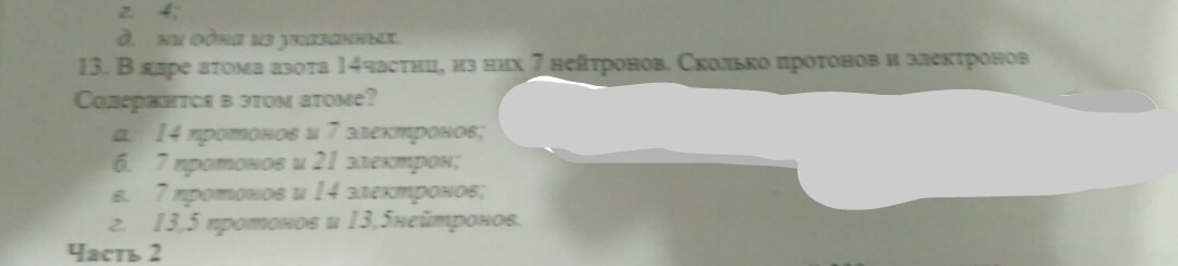 Всего в ядре 14 частиц (так называемых нуклонов). Дано: 7 нейтронов, следовательно, число протонов равно числу нейтронов равно 7.