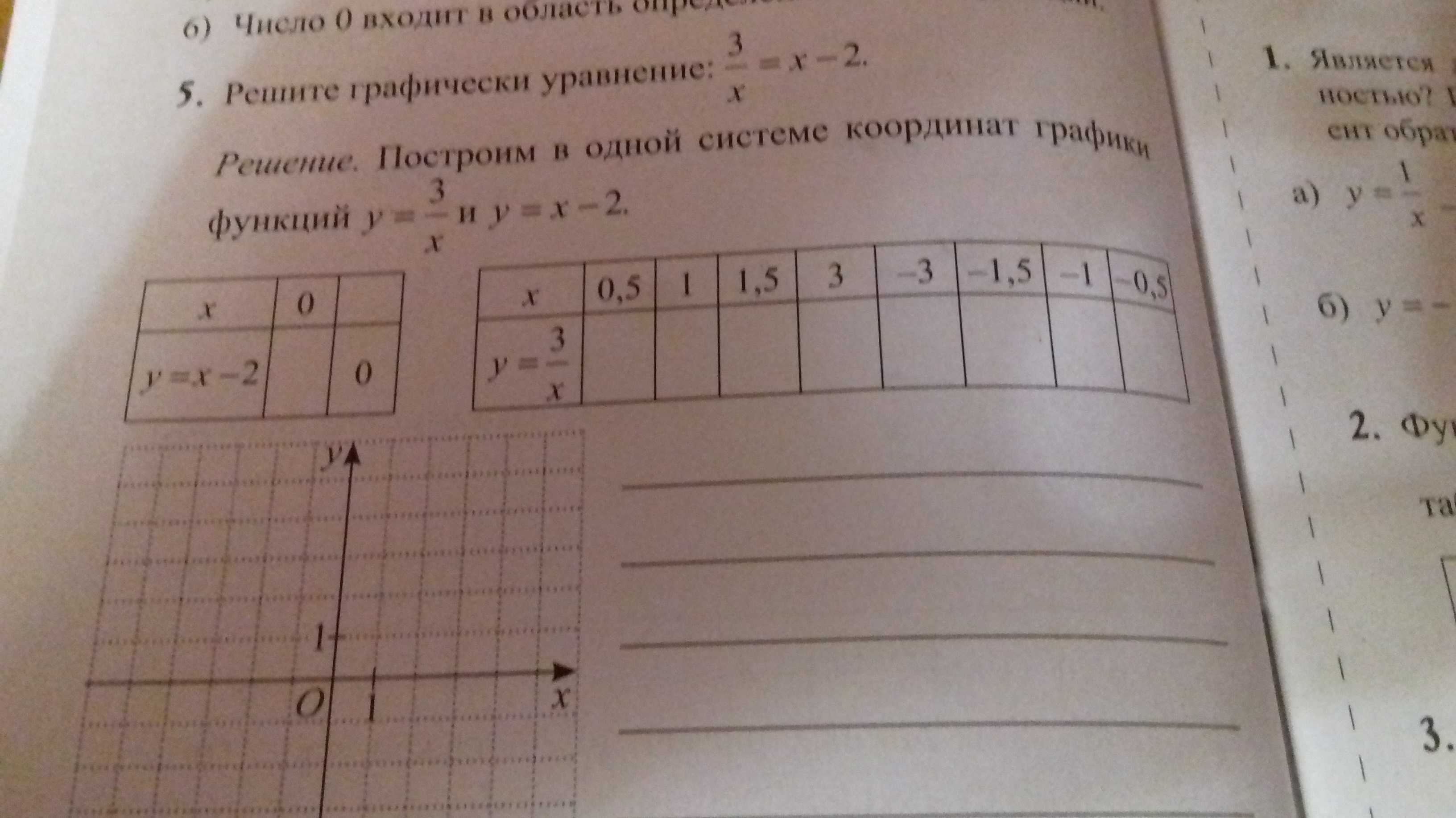 2) x|0,5|1|1,5|3|-3|-1,5|-1 |-0,5|
