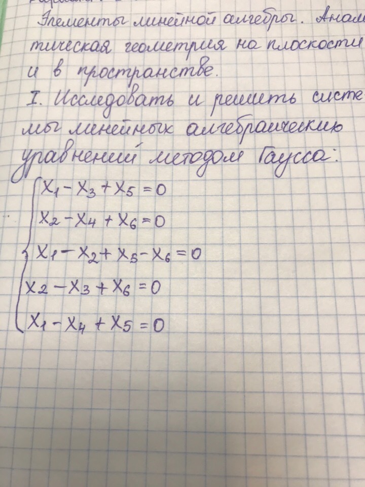 Задана однородная система лин. уравнений. Она всегда совместна, то есть имеет решения. Одним из решений всегда является тривиальное (нулевое) решение. Определим, сколько решений имеет система. Приведём систему к ступенчатому виду с помощью элементарных преобразований матрицы системы.