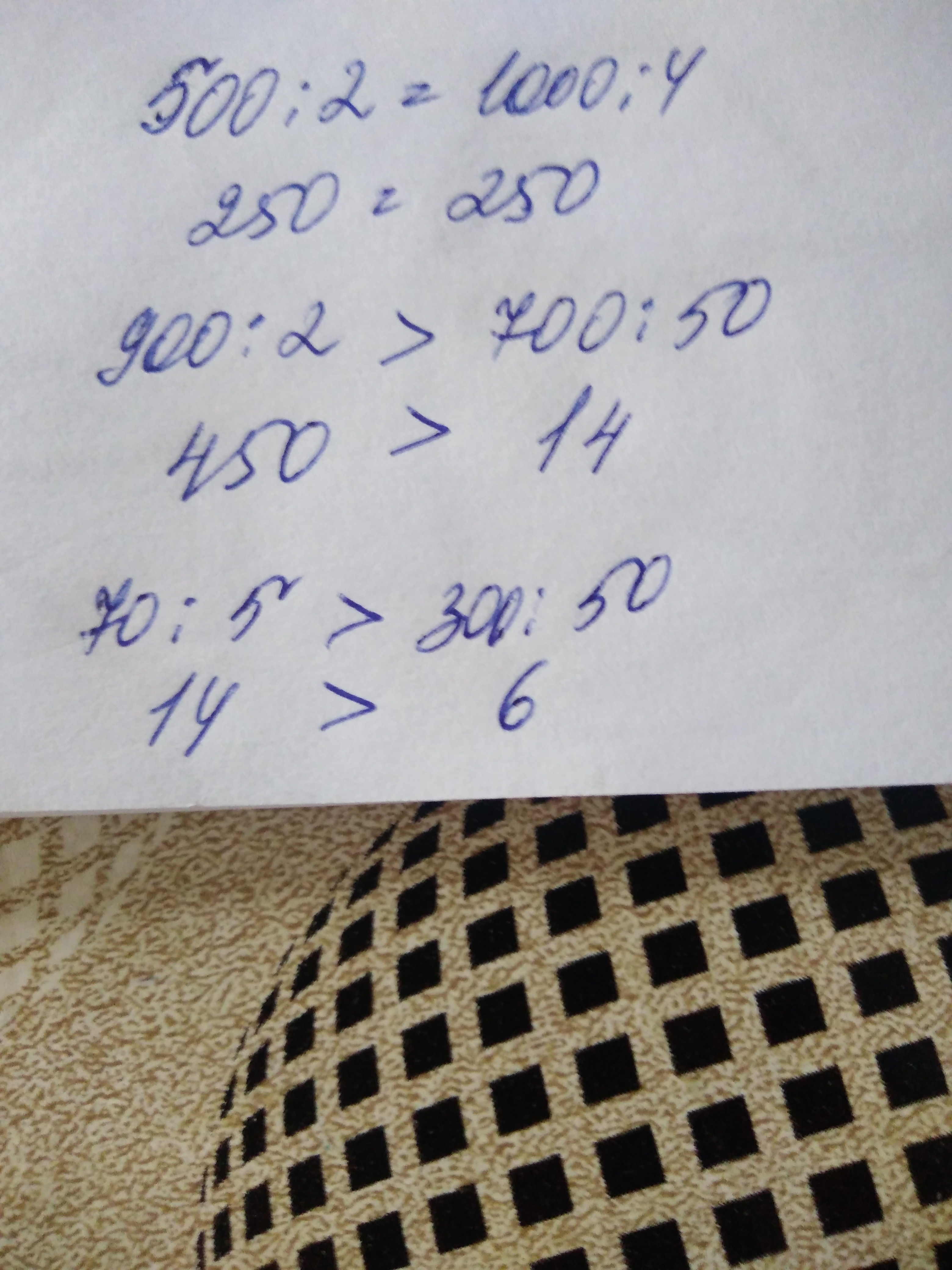 Математика 3клас алматыкитап часть 3 стр 6 задание 3 сравни 500÷2*1000÷4 900÷2*700÷50 70÷5*300÷50