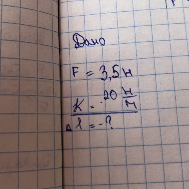 Δl = 3,5Н/20Н/м = 0,175м 17,5см