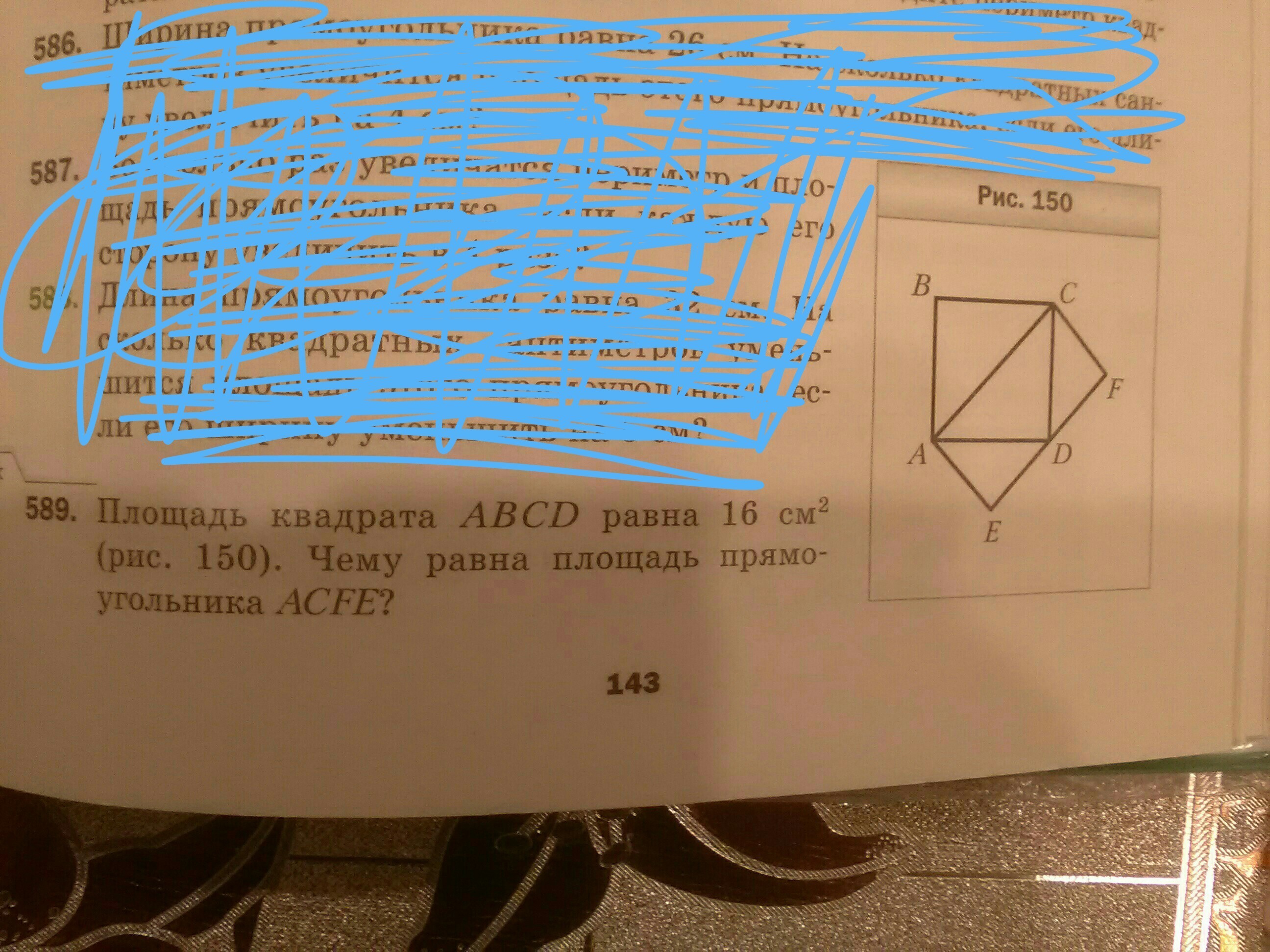 Площадь квадрата 16 см2, значит стороны по 4 см2,