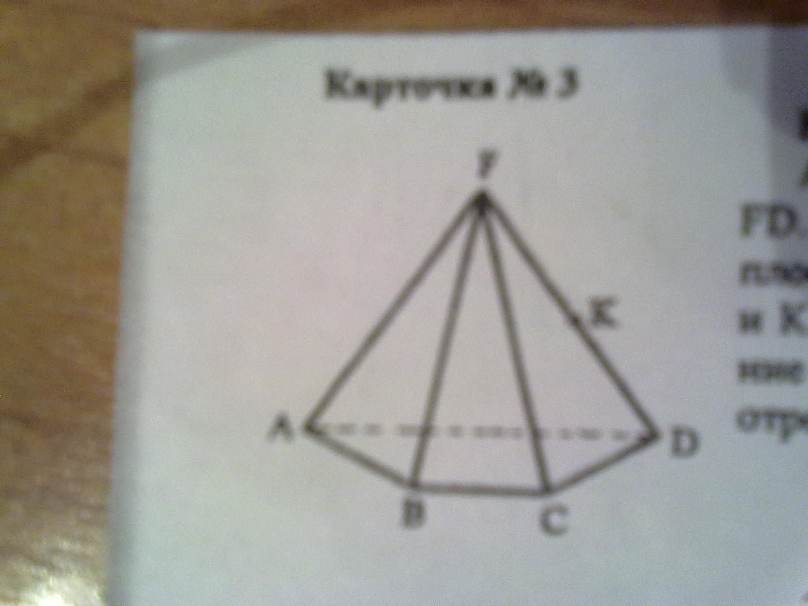 FABCD - пирамида. ABCD - трапеция. K - середина FD. Постройте сечение пирамиды плоскостью, проходящей через BC и K. Найдите длину AD, если сечение пересекает плоскость (AFD) по отрезку длиной 4см.