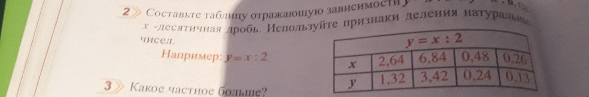 составьте таблицу отражающую зависимость у=x:3и у=x:6,где x- десятичная дробь.Используйте признаки деления натуральных чисел.