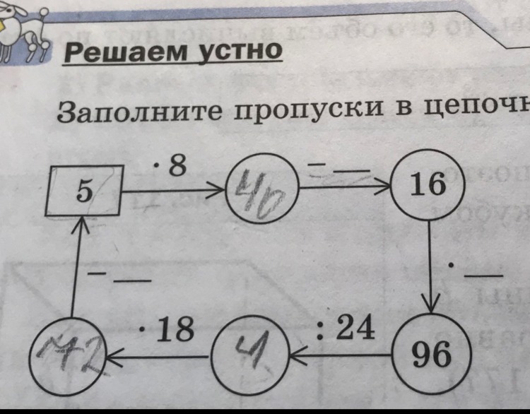 5*8=40-24=16*6=96:24=4*18=72-67=5