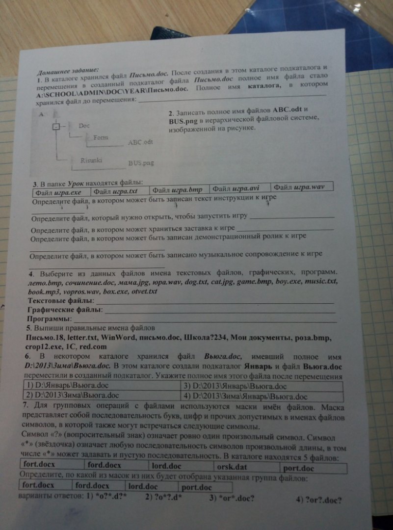 1) В каталоге A:SCHOOLADMINDOC создали подкаталог YEAR и переместили файл в него.