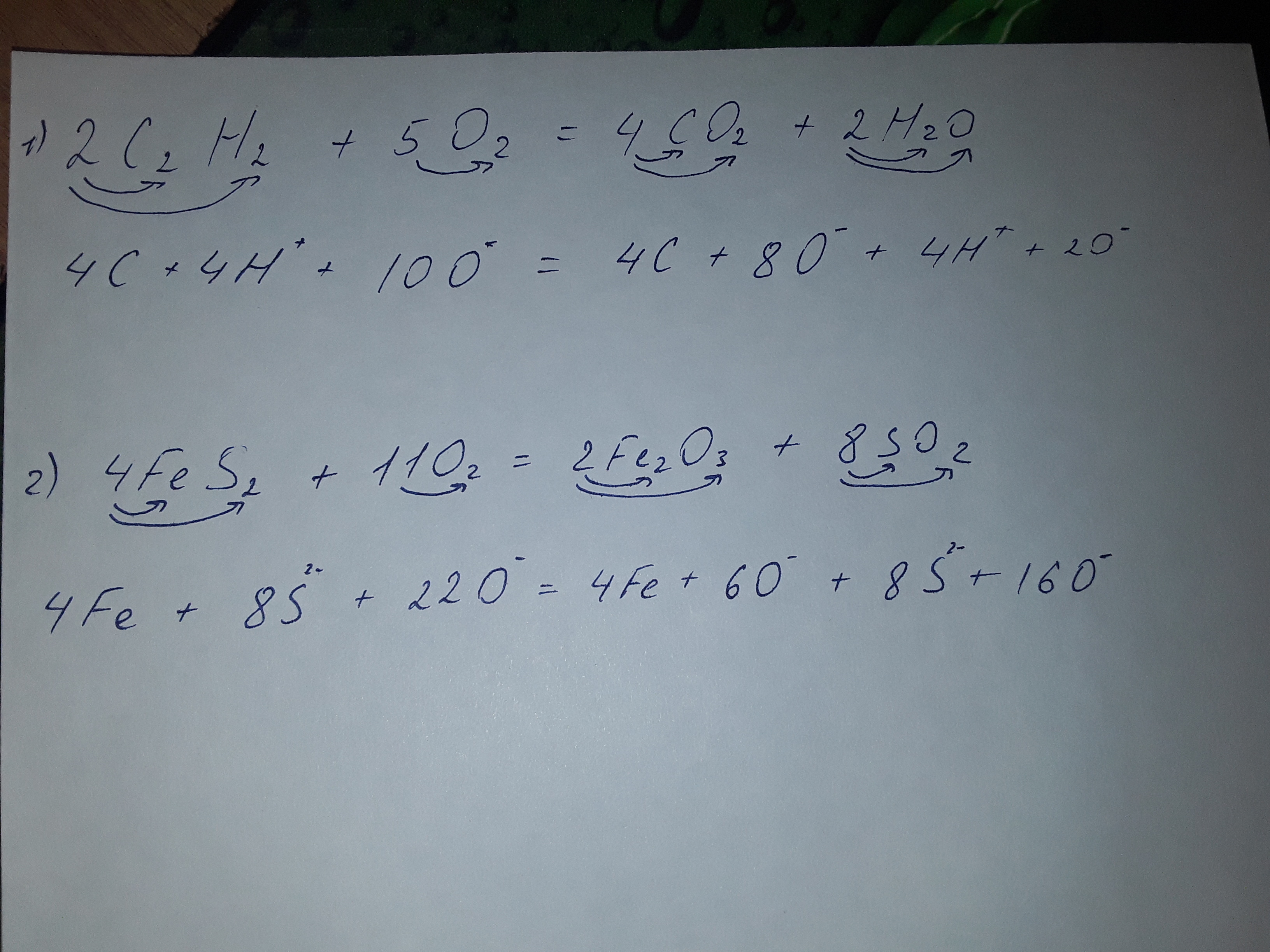 1) 2C2H2+5O2=4CO2+2H2O