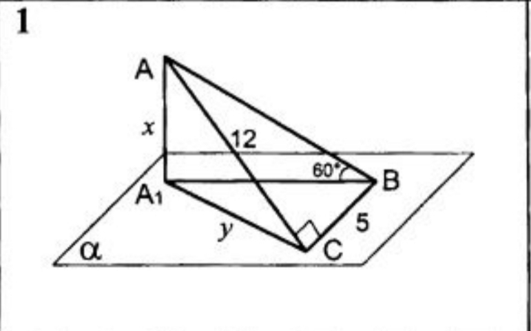 AA1 перпендикуляр к плоскости альфа AB и AC наклонные AC=12, BC=5, угол В = 60 ГРАДУСОВ, Найти : AA1 и A1C?