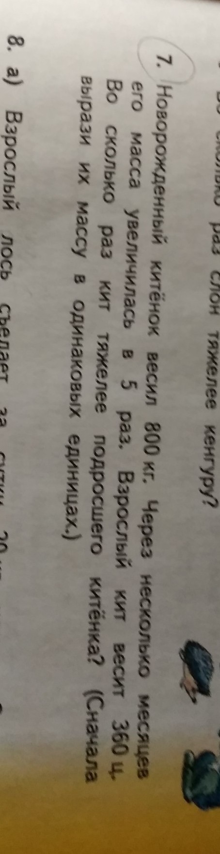 2.масса китенёнка составляет 800кг т.е. 800*5=4000