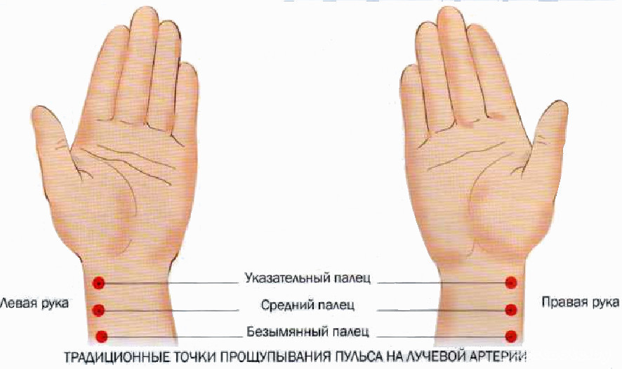 Самый простой способ (на мой взгляд) измерения пульса на картинке прикреплённой. Берёте 3 пальца и прикладываете как показано на рисунке (очень сильно прижимать не надо).