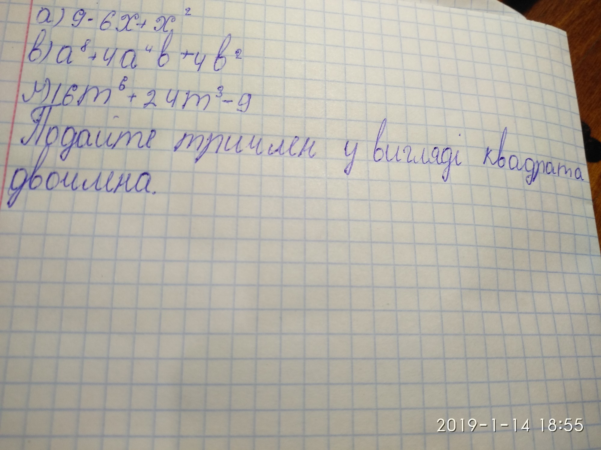 1) 9 - 6x + x² = x² - 6x + 9 = x² - 2 * 3 * x + 3² = (x - 3)²