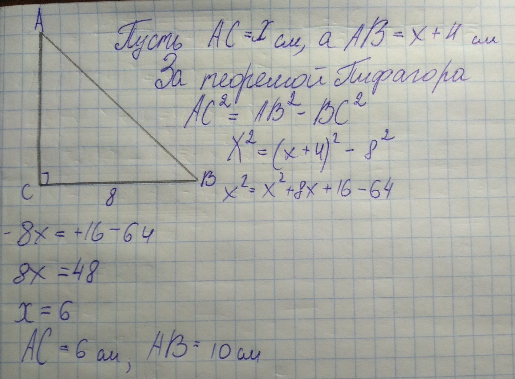 Ответ: катет АС=6 см