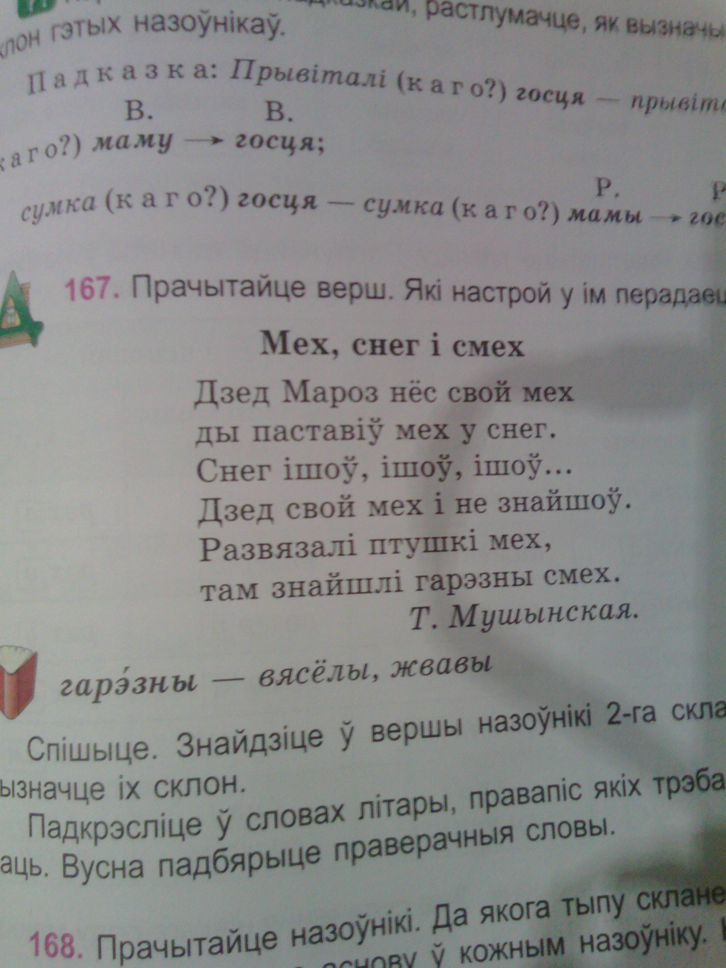 Помогите пожалуйста з бел.мовою.Найти назовнык 2-га скланення и вызначить их склон,подчеркнуть в словах буквы правопись которых нужно проверять)