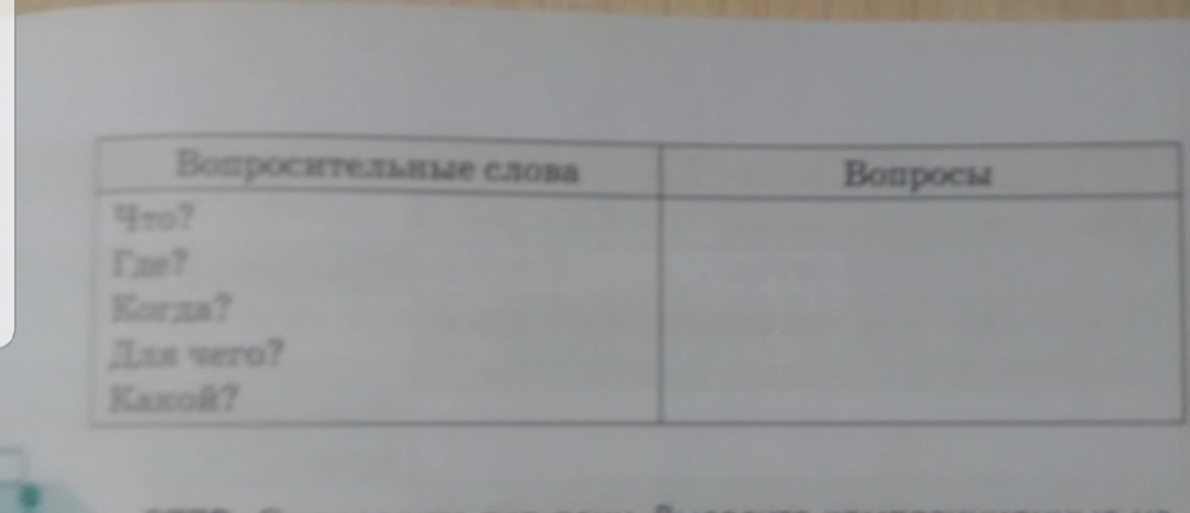 Заполните таблицу "Вопросительные слова". Составьте как можно больше вопросов по тексту,используя данные вопросительные слова.