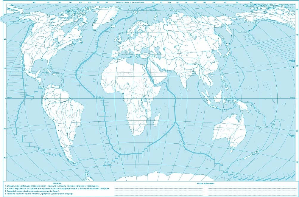 Нанесите на карту полушарий равнины: