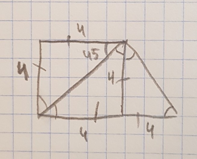 Треугольники равны. S=(4+4+4)÷2×4=24