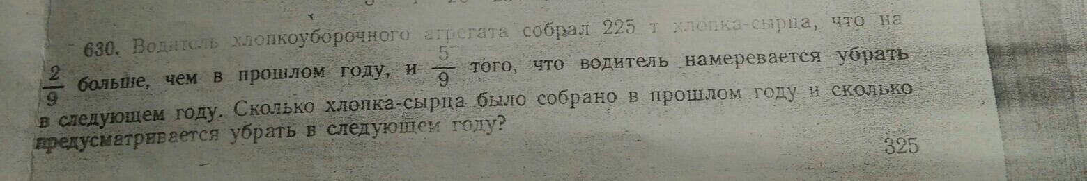 Т.к 9/9 = 225, то 225 * 2/9 = 50 - мы найдём сколько тон, он собрал в прошлом году. Аналогично 225 * 5/9 = 125 - нужно будет собрать в след. году