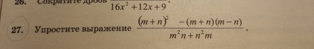 frac{ (m+n)^{2} - (m+n)(m-n)}{m^{2}n + mn^{2}}  = frac{ (m+n)((m+n) - (m-n))}{mn(m+n)} = frac{  ((m+n) - (m-n))}{nm} = frac{2m}{nm}=frac{2}{n}