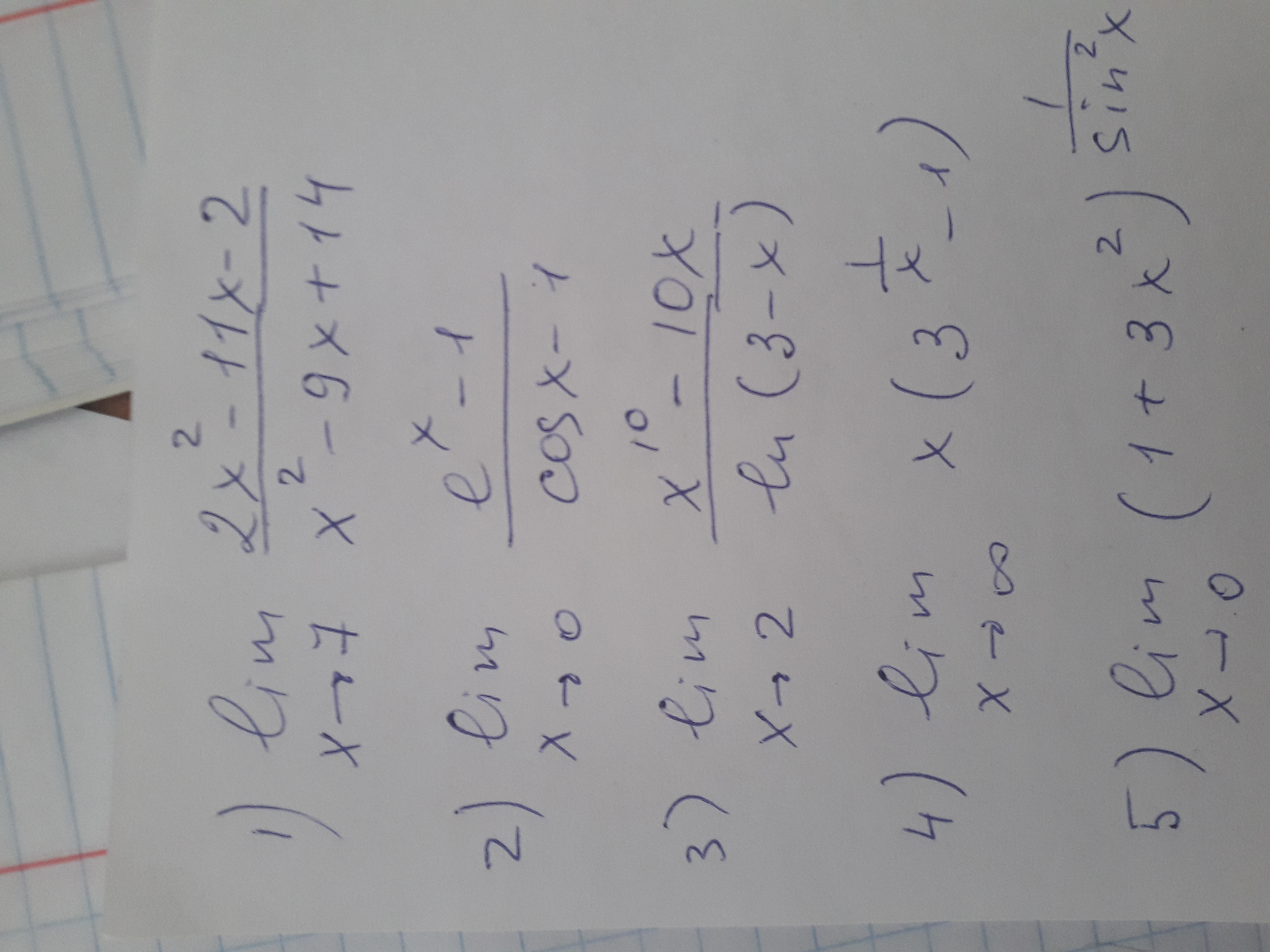 displaystyle lim_{x to0} frac{e^x-1}{cosx-1}=frac{0}{0}=lim_{x to0} frac{(e^x-1)'}{(cosx-1)'}=lim_{x to0} frac{e^x}{-sinx}=-infty