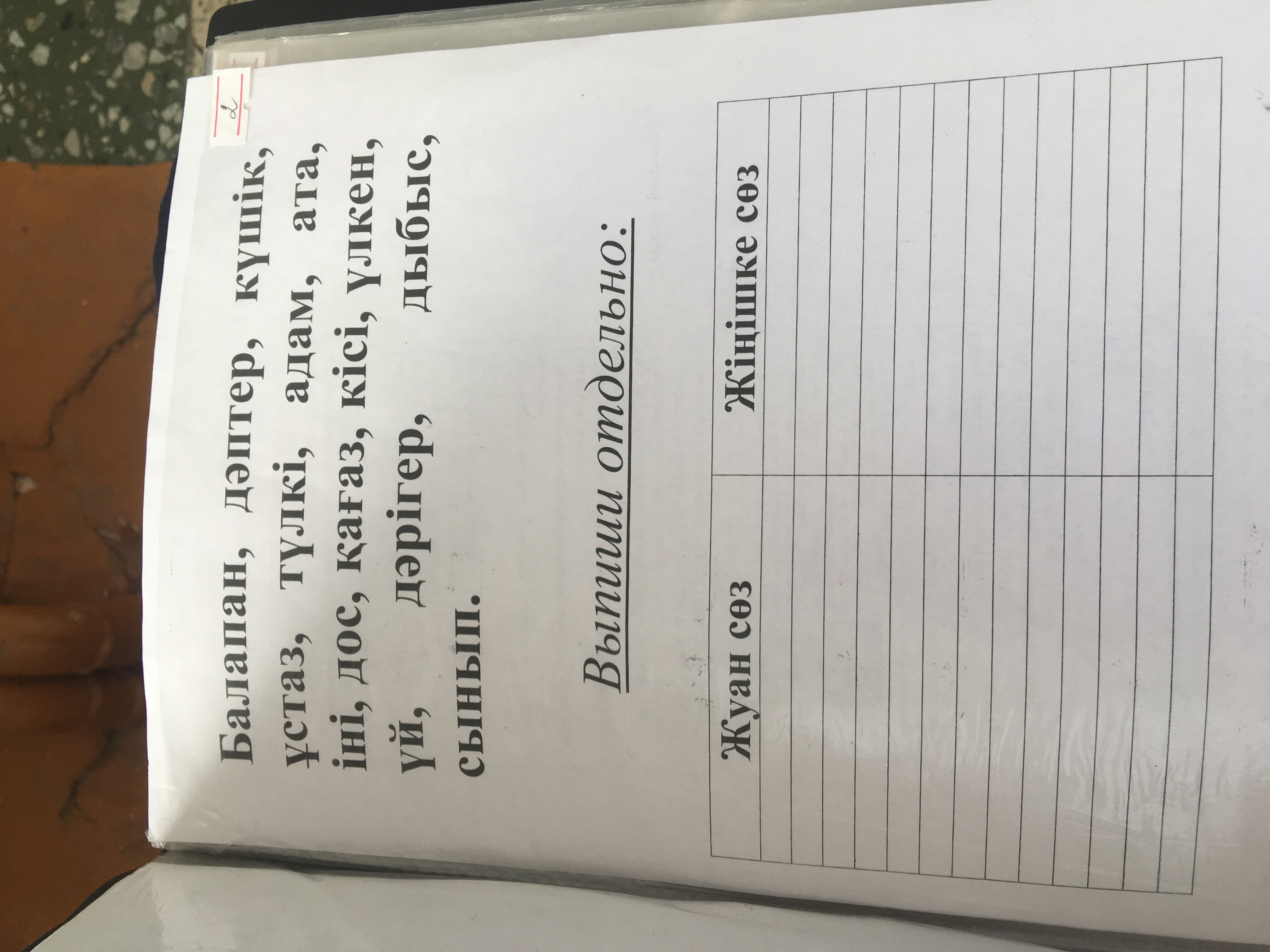 балапан, ұстаз, дос,дыбыс,адам,ата,қағаз,сынып.